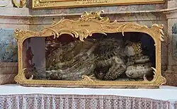 1744 wurden aus den Katakomben von Rom die vermuteten Überreste der Märtyrer Clemens, Amatus, Severinus und Constantia nach Kißlegg überführt. Sie wurden 1936 in verglasten Sarkophagen beigesetzt.[17]