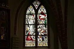 Im Chorraum steht ein mit überwiegend Gold verzierter Flügelaltar aus dem 15. Jahrhundert. An der Seitenwand der Kirche hängt ein Abendmahlbild, welches seit der Reformation davor angebracht war. Die Altarstufen sind umgrenzt von einer seltenen Altar-Galerie und die Fenster im Chorraum zeigen Bilder von Geburt, Taufe, Kreuzigung und Auferstehung Jesu. Von 1702 ist die Kanzel, eine schöne Schnitzarbeit des Barock mit Christus, den 4 Evangelisten sowie Petrus und Paulus. Die Orgel wurde von der Werkstatt Emil Hammer Orgelbau (1887/1970) hergestellt.
