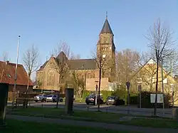 Das Gebäude wurde 1910–1911 an der Stelle einer im Kern spätromanischen Saalkirche errichtet. Es ist eine neuromanische Basilika. Der heutige Standort, der Bonenkamp, ist der Überlieferung nach ein alter Kultplatz.