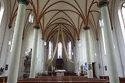 Die am 10. November 1833 eingeweihte neue Kirche, eine dreischiffige Hallenkirche aus heimischem Bruchschiefer, ist im Innenraum verputzt und die Fassade ist verfugt. Sie weist neogotische und neoromanische Stilelemente auf. Gleichzeitig mit dem Kirchenbau wurde daneben ein Pfarrhaus errichtet. 1871 wurde eine Orgel der Firma Krämer eingebaut.
