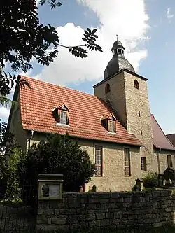 Die evangelische Dorfkirche mit einem ummauerten Friedhof befindet sich am westlichen Dorfrand der Ortschaft.