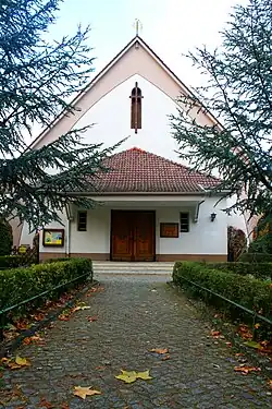 Die einschiffige Hallenkirche besitzt ein tief herabgezogenes Satteldach. Die äußerlich unauffällige Gestaltung korrespondiert mit der ebenfalls schlichten Innenausstattung. Der Chorraum ist durch einen dunkelblau abgesetzten Spitzbogen vom Kirchenhauptraum optisch getrennt und mit modernen Glasmalereien geschmückt. Zahlreiche Gedenktafeln und Abzeichen erinnern an die frühere militärische Nutzung der Kirche. Auffälligstes Ausstattungsmerkmal sind zwei historistische Radleuchter, die vermutlich aus dem Vorgängerbau aus dem 19. Jahrhundert stammen.