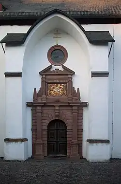 Der Turm hat eine Höhe von 35,2 Metern und wird durch eine sogenannte Welsche Haube abgeschlossen. Östlich daran schließt sich das durch drei Joche unterteilte Langhaus an. Hieran angeschlossen ist ein Chor mit dreiseitigem Abschluss. Die Mauern und die Rahmung des Hauptportals an der Südseite sind aus rotem Sandstein. Hierüber befindet sich das Wappen des Bauherrn. Der Dachreiter ist 24,2 Meter hoch, während der Raum im Innern 11,3 Meter bis an die Decke reicht. Die Breite des Langhauses beträgt innen 7,5 Meter und außen 12,5 Meter. Die Gesamtlänge der Kirche beläuft sich auf 33,9 Meter. Das Dach wird gebildet durch ein mit Schiefer gedecktes Stichkappengewölbe. Dort ist etwa oberhalb des Chors ein Glockentürmchen angebracht. Die Sakristei am östlichen Ende des Chores wurde um 1780 erbaut.