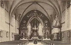- An der Ostwand hängt ein Vesperbild, es stand ursprünglich in einer Rochuskapelle, die um 1700 wegen einer Pestepidemie gebaut wurde.[9]