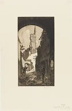 Während des Ersten Weltkriegs wurde die Kirche bis auf den Unterbau, in dem noch verschiedene Natursteinarten, darunter Eisensandstein in Teilen des Sockels der Nordfassade, zu finden sind, vollständig zerstört. 1923 wurde das Bauwerk nach den Plänen des Architekten Jules Coomans historisch getreu wiederaufgebaut. Die in der Kirche aufbewahrten Fotos zeigen den Stand der Arbeiten im September 1924 mit dem Bau des Chors, der Seitenchöre und der Seitenschiffe, mit neuen, noch offenen Dachstühlen, dem Mittelschiff im Gerüst und dem bis zum zweiten Stockwerk erhöhten Westturm. Als Materialien diente gelber Ziegelstein mit Verwendung von Naturstein wie Euville, Petit Granit und Braine-Bailleul-Sandstein (nach den Ausschreibungsunterlagen), unter anderem für Sockel, mehrere Strebepfeiler, Ecksteine, Fenstermaßwerk, Verdachung und Krabben.