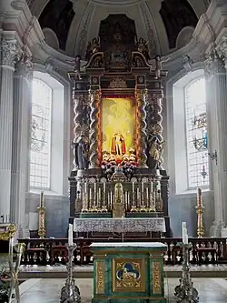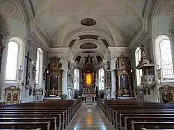 Die Seitenaltäre wurden 1852 von Josef Holzmaier gebaut. Der linke Seitenaltar wird von den Skulpturen des Dionysius von Augsburg und des Eustachius flankiert, der rechte von den Skulpturen des Nikolaus von Myra und des Ambrosius von Mailand. Seit dem Bau in der Barockzeit hatte die Kirche vier Hochaltäre; der letzte wurde 1916 im Stil des Neobarocks errichtet. Vom Altar von 1515 ist die Sitzfigur des heiligen Jakobus erhalten, die an Fronleichnam herausgenommen und in der Prozession mitgetragen wird.