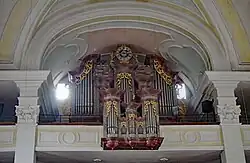 Die heutige Orgel mit Schleifladen wurde 1977 von Orgelbau Sandtner gebaut. Sie hat 29 Register auf zwei Manualen und Pedal sowie mechanische Spiel- und Registertraktur. Die erste Orgel von St. Jakobus baute 1740 Johann Andreas Fux, umgebaut wurde sie 1850 von Joseph Pröbstl. Die Vorgängerin des derzeitigen Instruments baute Franz Borgias Maerz 1906.[2] Die Disposition lautet:[3]