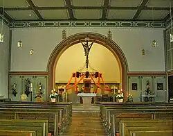 Zur Ausstattung der Kirche gehören Werke des Bildhauers Willi Hahn (Trier). Dazu zählen der Ambo von 1979, der Altar von 1981, sowie die 63 Zentner schwere Sakramentssäule aus Sandstein in der Sakramentskapelle von 1982, die biblische Szenen aus Altem und Neuem Testament darstellt. In der Sakramentskapelle befindet sich außerdem eine oktogonale, aus Bronze geschmiedete 9 Zentner schwere Leuchterkrone von 1990 des Metallbildhauers Klaus Apel (Trier-Kernscheid).[2]