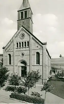 1846 wurden Pläne für einen Kirchenbau durch Bezirksbaumeister Lembke und Architekt Teufel gefertigt. Am 20. Juni 1847 erfolgte die Grundsteinlegung für die neue Kirche. Es entstand ein Bau mit den Stilmerkmalen eines von Baudirektor Heinrich Hübsch entwickelten Schemas einfacher Landkirchen im sogenannten Rundbogenstil. 1848 war die Kirche weitgehend fertiggestellt und wurde am 22. November ihrer Bestimmung übergeben. Im selben Jahr wurde neben der Kirche das heute noch bestehende Pfarrhaus erbaut. Auf einen Turm wurde damals aus Kostengründen verzichtet. Das Gotteshaus verfügte nur über einen Dachreiter mit Glocke über dem Hauptportalgiebel und Glocken im Dachraum der Kirche. Erst 1901 wurde nach Plänen des Erzbischöflichen Baudirektors Max Meckel ein Dachreiter mit spitzem Helmdach errichtet.