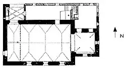 Im Anbau befindet sich heute eine Kapelle. Im Anbau steht auch das mittelalterliche Taufbecken. In den Wänden des Anbaus sind drei rote Marmortafeln eingearbeitet, die an Mitglieder der ehemaligen Schlossherrenfamilie erinnern.