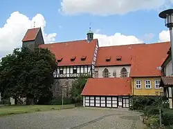 Die ehemalige Klosterkirche eines zunächst um 1105 als Kollegiatstift gegründeten Konvents, der 1139 in ein Augustinerchorfrauenstift umgewandelt wurde,[1] wurde laut Inschrift über dem Portal im Norden durch die Herzöge Christian Ludwig und Georg Wilhelm des Herzogtums Braunschweig-Lüneburg unter Einbeziehung älterer gotischer Bauteile 1647–1650 erbaut, nachdem der Vorgängerbau 1626 zerstört wurde.