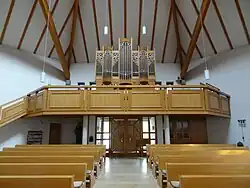 Am 21. September 1996 wurde zeitgleich mit der Kirche auch gleich eine Orgel geweiht. Sie wurde von der Firma Schädler aus Donaustauf errichtet und befindet sich auf der Ostempore. Das rein mechanische Schleifladeninstrument umfasst insgesamt 14 Registern auf zwei Manualen und Pedal. In Summe ergibt sich eine Anzahl von 932 Pfeifen. Die Disposition des Instruments lautet wie folgt:[2][6][7]
