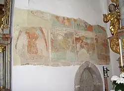 Die im 16. Jahrhundert überputzten Wandmalereien wurden 1962 im Bereich der Chornordwand und in den Jahren 1989 bis 1996 an der Chorsüdwand und der Langhausost- und Langhausnordwand teilweise freigelegt. Die ursprünglich den ganzen Chorraum ausschmückenden Wandmalereien enthalten Szenen aus der Legende des ersten Kirchenpatrons, des heiligen Agidius. Das mittlere Bild dieses Zyklus zeigt im Hintergrund die Leuchtenberger Burg und Altenstadt mit Kirche und Wehrfriedhof. Es sind dies die frühesten konkret erkennbaren Ortsansichten im Raum Vohenstrauß.