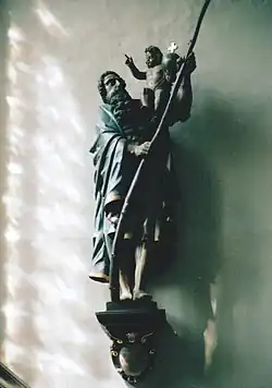 Im südlichen Seitenschiff steht eine überlebensgroße Figur des Christophorus. Mit einer Höhe von fast 3,50 Metern ist sie die größte Figur in der Kirche. Sie ist eine frühe Arbeit aus der Sasse-Werkstatt. Nach der Inschrift in der Kartusche unter der Konsole wurde sie 1680 von Christophorus Zeppenfeld und seiner Frau Anna Catharina Maria, geb. Christiani gestiftet. Die Figur erinnert an die gewaltige Darstellung des Heiligen in Paderborn, die 1619 von Heinrich Gröninger geschaffen wurde.
