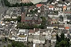Wegen der außerordentlich starken Bevölkerungszunahme wurde bereits kurze Zeit später eine größere Kirche notwendig. Das heutige Kirchengebäude sollte in zwei Bauabschnitten nach Entwürfen der Architekten Carl Rüdell und Richard Odenthal aus Köln errichtet werden. Im ersten Bauabschnitt wurden zwischen April 1892 und November 1893 Kreuzschiff, Chor und zwei Osttürme als Erweiterung der bestehenden Kirche von 1822 gebaut.
