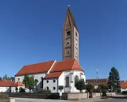 Das Kirchengebäude ist ein spätgotischer Bau aus dem späten 15. oder dem frühen 16. Jahrhundert. Der Kirchturm dürfte aus der gleichen Zeit stammen und trägt die beiden Jahreszahlen 1522 und 1524. Um 1710 wurde die Kirche umgebaut. Während dieses Umbaus wurde vor allem das Langhaus, die Stuckdekorationen und Fresken verändert. Die Kirche einschließlich Taufstein, Kommunionbank und Tabernakel wurde um 1800 neu eingerichtet. Eine entstellende Renovierung erfolgte 1885. Dabei wurde der Stuck im Langhaus entfernt und durch Dekorationsmalerei ersetzt. Des Weiteren wurden Altäre und eine Kanzel im Stil der Neurenaissance eingefügt. Im Zuge einer Innenrestaurierung unter Leitung des Mindelheimer Architekten David Eberle 1923/24 wurde versucht, den barocken Charakter der Kirche wiederherzustellen. So wurde wieder Stuck und Fresken im Langhaus geschaffen sowie Altäre und eine Kanzel im Neurokoko-Stil aufgestellt. Weitere Renovierungen fanden unter anderem 1939, 1951 und 1953 statt.