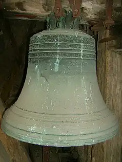 Im Turm läutet eine 1703 gegossene Bronzeglocke von Jakob Pappe (Erfurt). Sie wurde mit Inventarnummer 11-23-282 B im Zweiten Weltkrieg nach Hamburg abgeliefert und kehrte am 4. Mai 1950 zurück. Auf ihr ist zu lesen: /HANS HEINRICH KIRCHNER/ V /HANS HEINRIC GROSMAN/ HANS H. GEORGE CHRISTIAN HÖLZEL/ P / T //HYRONIMVS MERTTEN / ELIAS BEYER / GEORGE KROSE/ HANNS / I / S /HANS BASTIAN ZIEN//HERZOGK.// HANS RIESSE/ IOHANN GEORG PREISCHEL / S / T //. Ihre großen Schwestern hatten im Ersten Weltkrieg nicht so ein Glück. Sie wurden eingeschmolzen und 1919 durch drei Eisenhartgussglocken der Firma Schilling & Lattermann (Apolda und Morgenröthe) ersetzt.[2]