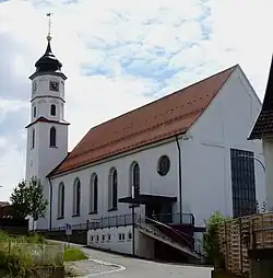 In der Kirche befinden sich Apostelfiguren des Ulmer Meisters von Zell am Adelsbach (heute Pfullendorf), welche um 1490 erschaffen wurden. Das Hochaltarbild wurde 1729 von Franz Joseph Spiegler gemalt.[2]