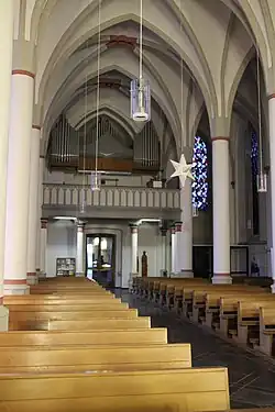 Die Orgel ist ein Werk der Orgelbaufirma Karl Kamp aus Aachen aus dem Jahr 1951 und verfügt über 22 Register. Sie ersetzt die im Krieg zerstörte Vorgängerorgel. Das Instrument wurde 1977 durch Orgelbaumeister Peter Berretz aus Eschweiler renoviert und leicht verändert.[3]