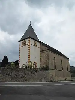 Nach Niederlegung der alten Kapelle bis auf den Chorturm, wurde 1846 an diesen in Nord-Süd-Ausrichtung eine neue, größere Kirche in neogotischen Formen angebaut und so die traditionelle Ostung des Chorraums aufgegeben. Das Erdgeschoss des Turms dient seit 1896 als Eingangsvorhalle mit dem offenen (ehemaligen) Chorbogen zum Friedhof hin. 1991 wurde der alte Chorturm grundlegend restauriert und erhielt eine neue Farbfassung.