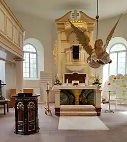 Kanzelaltar und Taufengel