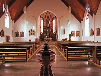 In den Jahren 1974 bis 1977 wurde das Kirchenschiff in der heutigen Gestalt von Grund auf neu gebaut. Es hat ein innen sichtbares Satteldach, das von Quergiebeln der seitlichen Fenster angeschnitten wird. Der Chor blieb erhalten.