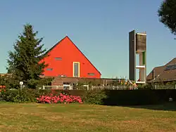 Die Kirche wurde nach den Plänen von Josef Fehlig erbaut, ausgeführt als Beton-Fertigteilkirche mit freistehendem Glockenturm, und befand sich in rund 70 Meter Höhe über dem Meeresspiegel.