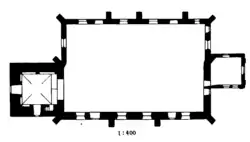 1660 wurde das Kirchenschiff nach Norden erweitert.[1] Dabei wurde das Gewölbe entfernt und die drei gotischen Schlusssteine an einer Sakristei eingemauert, die an die Ostseite des Langhauses angebaut wurde. Süd- und Ostwand der gotischen Kirche wurden beibehalten.[2] 1789 erfolgte wegen Baufälligkeit eine Renovierung, bei der nur die Umfassungsmauern erhalten blieben.[3]