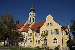 Die katholische Stadtpfarrkirche St. Josef an der Wieshuberstraße 2 bildet den Kern des Stadtteils Reinhausens und damit eines der Zentren des Stadtnordens von Regensburg.