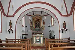 Die dem heiligen Josef geweihte Kirche ist ein verputzter barocker Bruchsteinbau mit zwei Achsen. Der Saalbau, dessen quadratisches Schiff eine Seitenlänge von ungefähr sechs Metern besitzt, schließt mit einem dreiseitigen Chor mit einer Breite von 4,15 Meter und einer Tiefe von 5,50 Meter. Das Westportal und die jeweils zwei Fenster an den Traufseiten sind rundbogig geschlossen. Am Westende sind die Ecken des Daches gebrochen und der Chor ist mit einer breiten achtseitigen Kuppel gedeckt, die von einer geschieferten Laterne bekrönt wird.