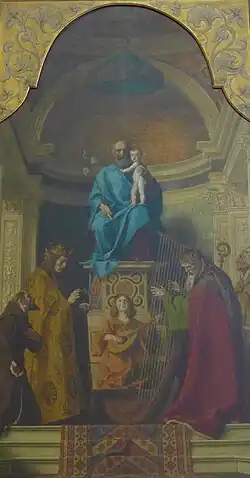 Vom raumgreifenden Neobarockaltar mit dem Altarbild „Die Verehrung des heiligen Josef mit dem Jesuskind“ von Gebhard Fugel aus dem Jahr 1905 hat sich nur noch die Ölskizze erhalten. Die Komposition ist inspiriert von der Malerei Giovanni Bellinis.