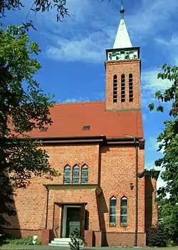 Die Backsteinkirche entstand nach Plänen des Architekten Kurt Matern, Dombaumeister im Bistum Paderborn.[5] An die Kirche mit ihrem eingezogenen Turm ist im Westen das Pfarrhaus angebaut. Das Gemeindehaus wurde später errichtet.