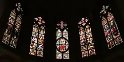 Fenster über dem Hauptportal sowie rechts und links davon stammen aus dem Jahr 1928 von unbekannten Künstlern. Weitere Fenster, beispielsweise unter der Empore in der Nähe des Seiteneingangs und in der Kapelle daneben, schuf der deutsche Maler und Grafiker Ernst Otto Köpke im Jahr 1971.[9]