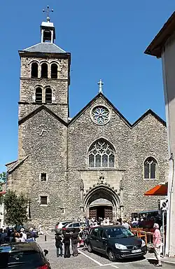 Das Kirchengebäude im gotischen Flamboyantstil geht auf eine kleine romanischen Kapelle zurück, die hier im 11. Jahrhundert vorhanden war. Der aus Kalk- und Feldsteinen errichtete Sakralbau wurde bei seiner Einweihung am 16. Juni 1316 in den Rang einer Stiftskirche erhoben und erhielt den Namen des Heiligen Julien de Brioude. In der Zeit der Religionskriege wurde die Kirche protestantisch – von 1563 bis 1579. Ab dem 7. Juni 1794 war sie Tempel des Höchsten Wesens («Temple de l'Etre Suprême»), 1795 wurde St. Julien wieder katholisch und blieb es bis heute.