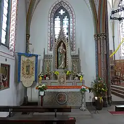 Die neogotische Kirchenausstattung ergänzte man in den folgenden Jahren. So fertigte die Trierer Werkstatt Carl Walter im Jahr 1866 die vierzehn halbplastischen Kreuzwegstationsbilder aus Terrakotta. Die Trierer Orgelbaufirma Heinrich Wilhelm Breidenfeld lieferte im Jahr 1871 die Orgel, deren Gehäuse der Trierer Kunstschreiner C. Koch erstellt hatte. Unter der Ägide von Pfarrer Karl Joseph Petry baute man im Jahr 1881 im Hochaltar eine vergoldete und emaillierte Tabernakeltür ein, die der renommierte Kölner Goldschmied Gabriel Hermeling entworfen und angefertigt hatte. Die Kosten für dieses Werk trug die Familie Villeroy.[50]