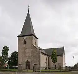 Die Gemeinde wurde erstmals 1123 als Pfarre erwähnt. Der kreuzförmige, in den älteren Teilen verputzte Bruchsteinbau ist mit einem Satteldach gedeckt. Die Apsis schließt polygon, der Turm steht an der Westseite, In der Nord- und Südwand des Langhauses sind noch Teile des romanischen Kerns erhalten.