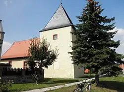 Im ehemaligen Rittergutsdorf nannte man die Kirche 1421 erstmals urkundlich. Auf einer Grabplatte ist auf der Vorderseite das Jahr 1587 eingemeißelt. Über der Tür im Osten ist in einem Giebelfeld mit Engelskopf das Jahr 1684 angegeben. Der Kanzelaltar stammt aus dem 17. Jahrhundert. Die Kirche, die 1989 nicht mehr zu nutzen war, wurde bis 2006 renoviert und steht unter Denkmalschutz. Sie liegt am ins Leben gerufenen ökumenischen Pilgerweg von Görlitz nach Vacha, der zu einem der deutschen Jakobswege zählt.