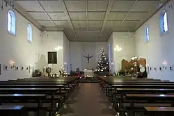 Im Zweiten Weltkrieg wurde das Gotteshaus stark beschädigt, sodass der Innenraum nach der Instandsetzung zwischen 1945 und 1947 sehr schlicht wirkt.[1]