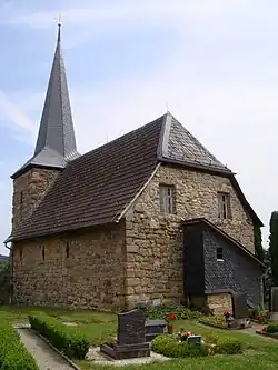 Der einschiffige Kirchenbau mit eingezogenem romanischen quadratischem Chor weist an der Südseite ein romanisches Giebelfeld und im Mauerwerk an der Nordseite Reste aus der Entstehungszeit auf. Die Außenwände des Turmes und Kirchenschiffes bestehen aus Naturstein.