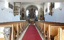 Im Jahr 1739 wurde die Kirche barock umgestaltet. Die Fenster wurden mit geschweiften Fensterbögen versehen. Im Chor schuf Franz Schilling das Deckengemälde des hl. Laurentius. Aus der Zeit stammen auch Kanzel und Taufstein.
