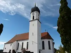 An Stelle des heutigen Kirchenbaus befand sich bereits ein spätgotischer Vorgängerbau. Die jetzige Kirche wurde im 17. oder 18. Jahrhundert errichtet. Dabei wurden Teile des Vorgängerbaues wieder verwendet. Eine Umgestaltung fand 1761 durch Rupert Beer, einen Sohn des Baumeisters Johann Georg Beer, und eine Verlängerung in Richtung Westen 1929 durch David Eberle statt.
