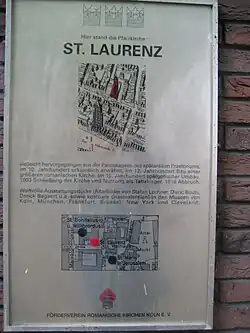 Die Kirche beheimatete wertvolle Ausstattungsstücke, die heute in Museen in Köln, München, Frankfurt am Main, Brüssel, New York und Cleveland zu besichtigen sind. Dazu zählen unter anderem Altarbilder von Stefan Lochner, Dierick Bouts, Derick Baegert u. a. Die Glasmalerei, die sich in der Kirche St. Laurenz befand, ist besonders hervorzuheben.