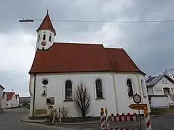 Die Kirche wurde von Sebastian Lachenmayr errichtet und 1686 geweiht. Das Gebäude besteht aus einem Saal mit Flachdecke. An diesen schließt sich der leicht eingezogene Chor mit dreiseitigem Schluss an. An der Westseite über dem Eingang befindet sich ein Dachreiter. Der Hochaltar zeigt ein Kruzifix mit der Hl. Maria Magdalena aus dem Ende des 17. Jahrhunderts. Die Empore an der Westseite zieren Tafelbilder mit Darstellungen des Salvator mundi und den Aposteln. Diese stammen aus der Zeit um 1700.