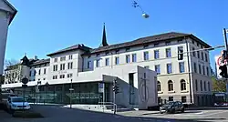 1898 wurde die Anstalt nach Rottweil-Rottenmünster verlegt (heute Vinzenz-von-Paul-Hospital). 94 Kranke fuhren im Sonderzug nach Rottweil.[2] Nunmehr kam die von den Barmherzigen Schwestern getragene Haushaltungsschule von der Bocksgasse hierher. Nach dem Kultbild der Maria vom Haus Loreto erhielt sie den Namen St. Loreto. Um 1900 bestand in St. Loreto auch ein Marienheim für Mädchen arbeitender Stände, bevor 1902 ein eigenes Haus in der Paradiesstraße 20 bezogen werden konnte.[3] Ab 1918 wurden auch Kindergärtnerinnen hier ausgebildet; 1902 war im Loretogarten der bis heute bestehende Kindergarten St. Paul eröffnet worden.[4] (In der Trägerschaft der Barmherzigen Schwestern befindet sich auch die ebenfalls dort befindliche Kindertagesstätte Rupert Mayer.)