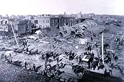 Der Wirbelsturm war in mancherlei Hinsicht ein perfekter Sturm. Er ereignete sich zu einer Zeit, als viele Menschen auf dem Heimweg von der Arbeit waren und bahnte sich seinen zerstörerischen Weg durch die Innenstadt einer Metropole, die zu dem damaligen Zeitpunkt schon an die 500.000 Einwohner zählte. Der Sturm riss zahlreiche Stromleitungen nieder, so dass weite Teile der Stadt im Dunkeln lagen. Dadurch wurden mehrere Personen verletzt und eine Reihe von Bränden ausgelöst. Rettungskräfte mussten bei der Suche nach Überlebenden Fackeln verwenden. Zerstörte Telefon- und Telegrafenleitungen behinderten die dringend benötigte Kommunikation mit der Außenwelt. Der Sturm beschädigte auch Straßenbahn- und Eisenbahnlinien, wodurch es für die Menschen schwierig bis unmöglich wurde, in dieser Nacht von der Arbeit nach Hause zu kommen.