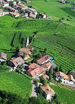 - ↑ Bericht der Alpenzeitung vom 13. Juni 1929, S. 6: Kampf dem schlimmsten Feind unseres Weinbaues! Gründungs-Versammlung der Genossenschaft für künstliche Beregnung für St. Magdalena, St. Justina und Laitach.