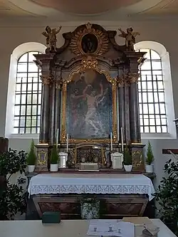 Der reich gegliederte Hochaltar (1730/40) im frühen Rokokostil stammt angeblich aus der 1803 abgebrochenen Klosterkirche Wessobrunn. In der Mitte befindet sich eine Skulptur der hl. Margaretha, assistiert an den Seiten von den hll. Korbinian und Sylvester. Die kostbar verzierte Chordecke schmücken der von Benedikt Heiß 1723/24 ausgeführte Stuck und das Fresko Der Traum Jakobs (1720, Jakob Krenauer). Die südliche Chorseite zieren Glasgemälde (um 1910) von der Mayer’schen Hofkunstanstalt.