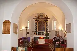 Der Innenraum des Langhauses ist mit einer Kassettendecke überspannt, der des Chors mit einem Kreuzgratgewölbe. Zur Kirchenausstattung gehört ein Altar aus der Mitte des 17. Jahrhunderts, auf dessen Altarretabel die heilige Margareta dargestellt ist.