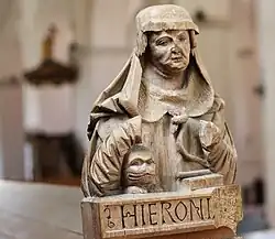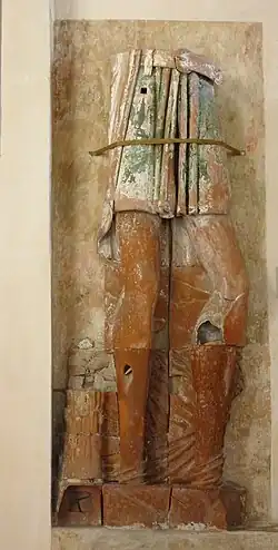 - An der Westwand wird der untere Teil einer Tonfigur des heiligen Christophorus aufbewahrt. Das 2,86 Meter hohe Fragment ist Teil einer riesenhaften Skulptur, die aus der Zeit um 1440/50 stammt und die beim Einbau der Empore abgebrochen wurde.