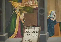 Die Tafeln der Predella stellen die Höllenfahrt Christi, einen Papst mit dem Kloster Auhausen im Hintergrund, den Auferstandenen und den ungläubigen Thomas dar. Die mittlere linke Szene trägt die Inschrift regina coeli letare alleluia, die Jahreszahl 1513 und das Monogramm des Malers. Die Außenseiten der Tafeln sind mit den Darstellungen der Anna selbdritt, der heiligen Odilia, der heiligen Scholastika von Nursia und der heiligen Barbara versehen.